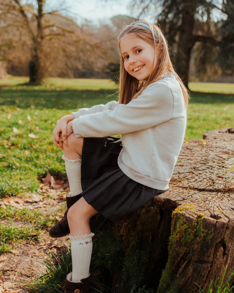 Découvrez nos chaussettes hautes pour petite fille, sublimées par une broderie réalisée à la main avec soin et précision.