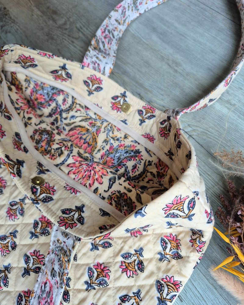 Pensé comme une pièce à la fois belle et utile, ce tote bag matelassé est un véritable coup de cœur pour toutes celles qui aiment l’artisanat et les accessoires uniques.